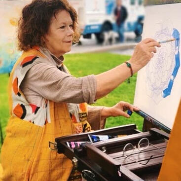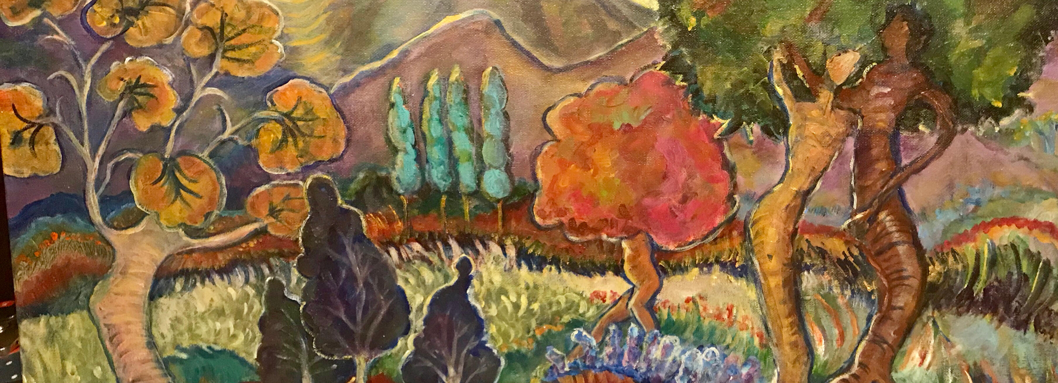 I have created art most of my adult life – batiks, floorcloths, murals, hand-painted photography, mosaics, and paintings in oil and acrylic, and sometimes fabric. And I have created eight illustrated books, some with my daughters, Aimee Porter and Jenny Felimi, who passed away from cancer in 2023. My work is inspired by many things, but most special to me is the series of paintings I’ve done in the theme of the unity of humanity - celebrating our differences (not just tolerating them…). You will see it in my “Dancing Trees” series. I am a mother and grandmother and love doing art projects with other children as well. My daughter Aimee and I have done many projects with children at the Refugee Children Center, and three were recently on exhibit at the Skirball Cultural Center in LA. I have also worked as an illustrator, writer and editor for Oceti Wakan for many years creating curriculum for Native American children and youth for the prevention of addiction and suicide. I feel I’ve had a very blessed and creative life!